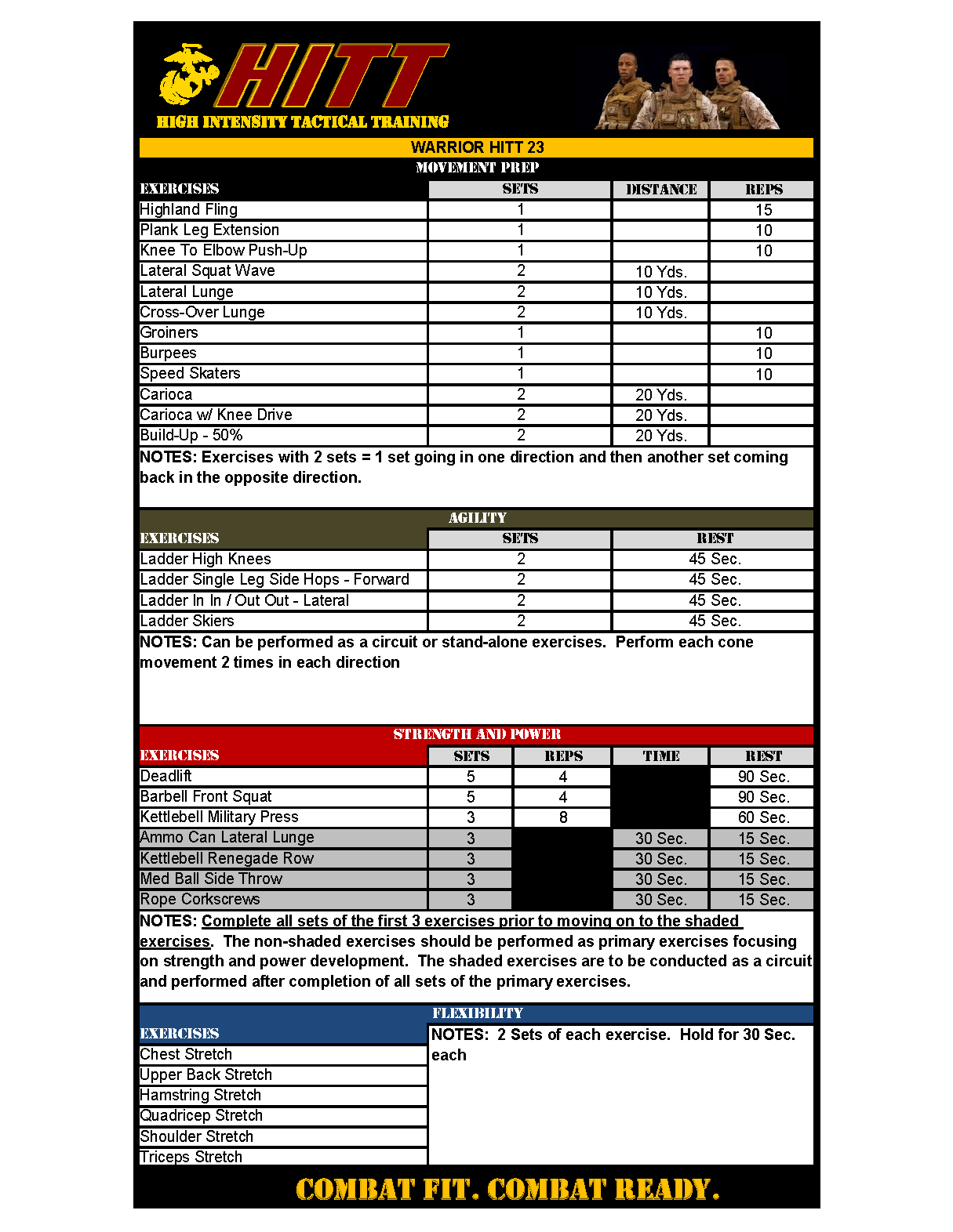 workout hitt fitness worksheet marines warrior marine corps mil force physical